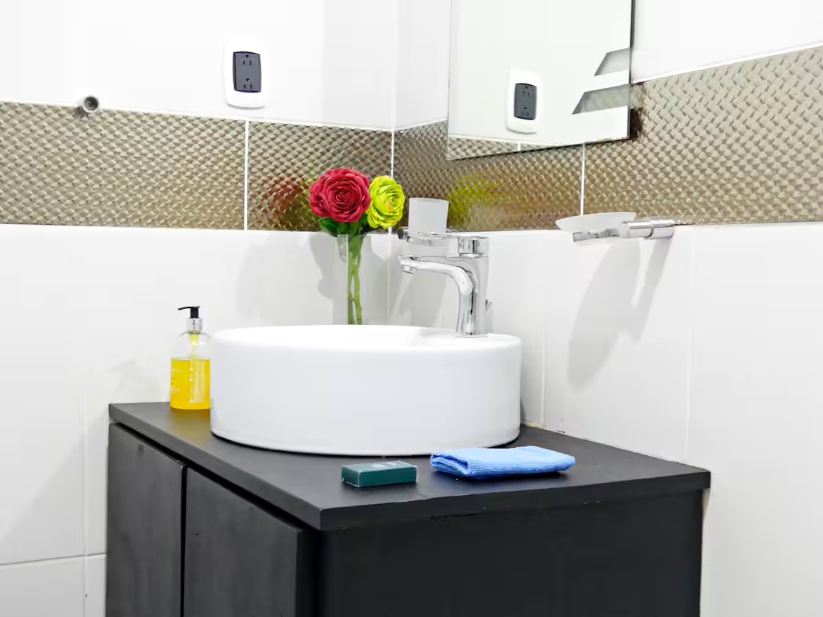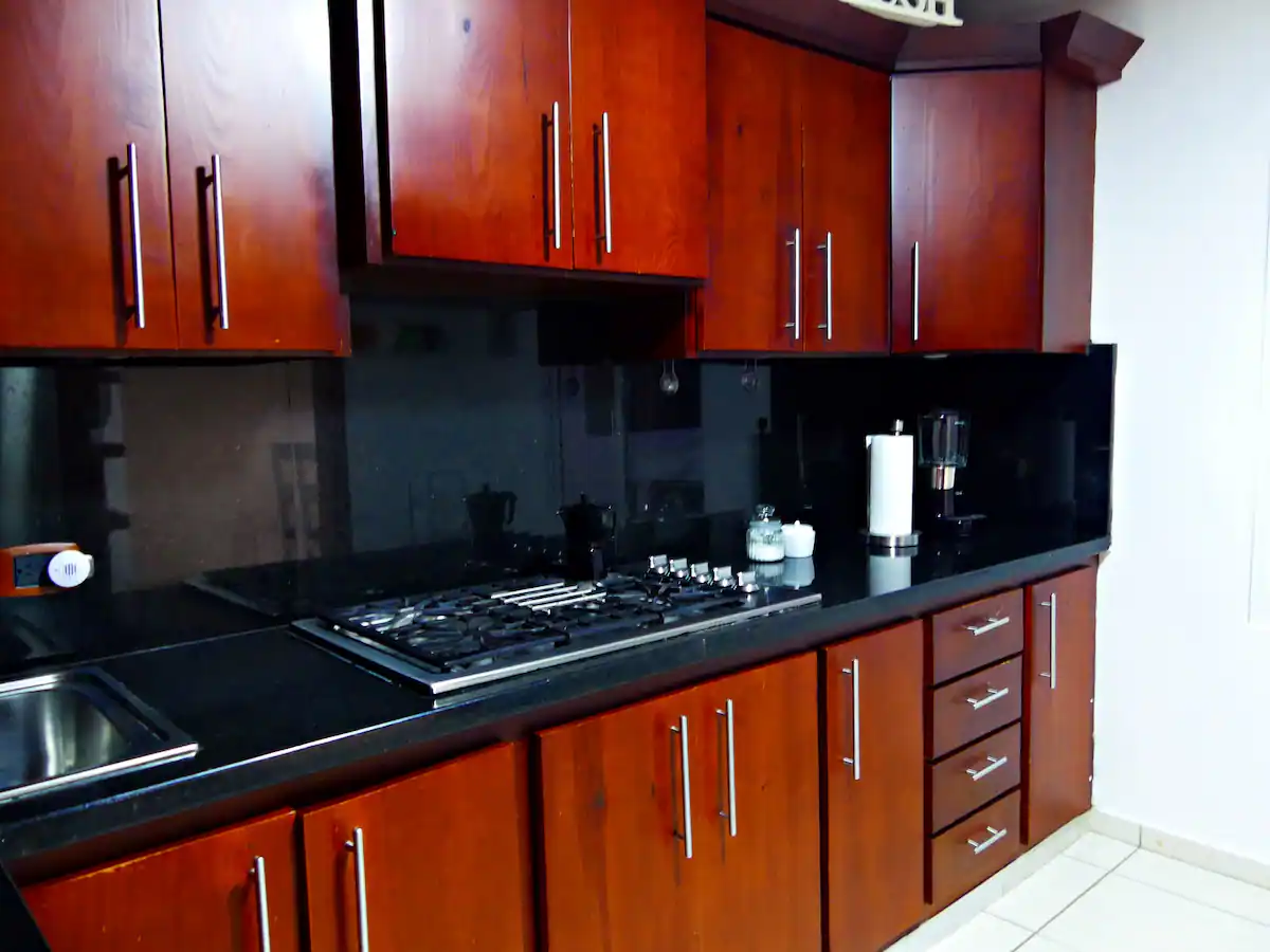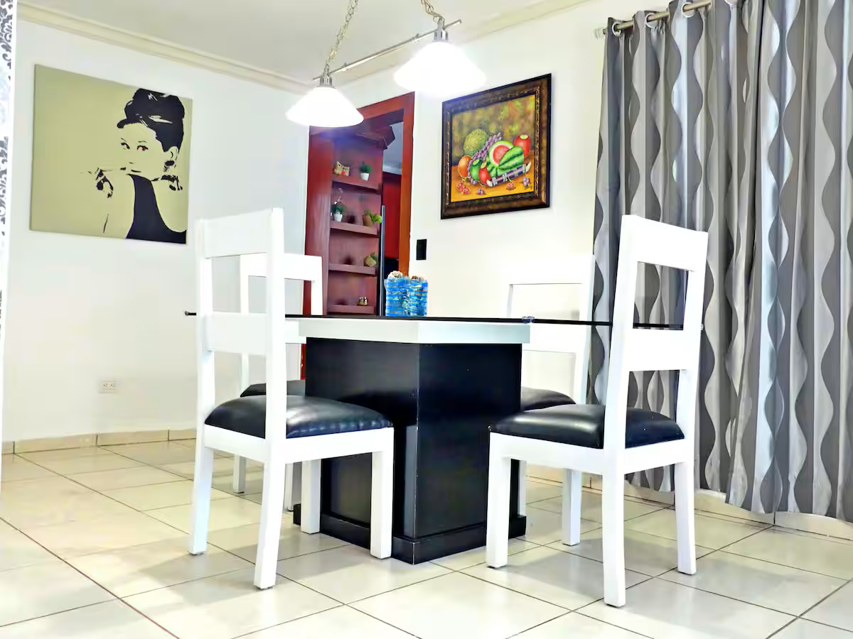 • Cocina equipada: nevera, microondas, cafetera, tostadora, licuadora, horno y utensilios básicos