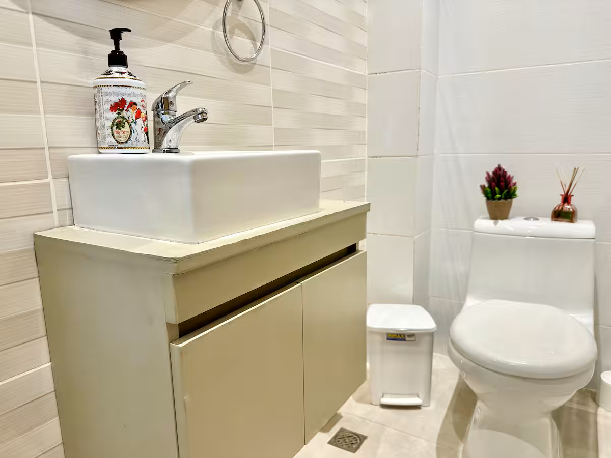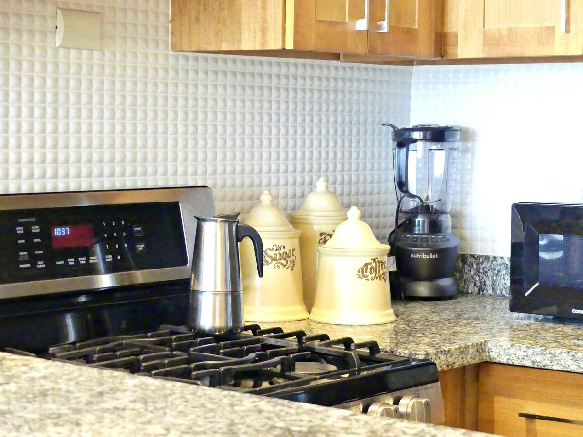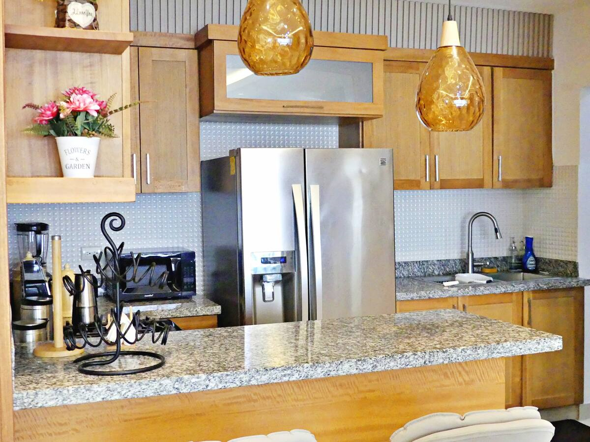 • Cocina totalmente equipada: nevera, microondas, cafetera, tostadora, licuadora, horno y utensilios básicos